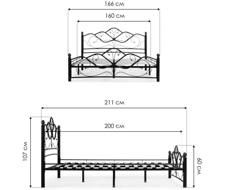 Длина кровати: 211 см.