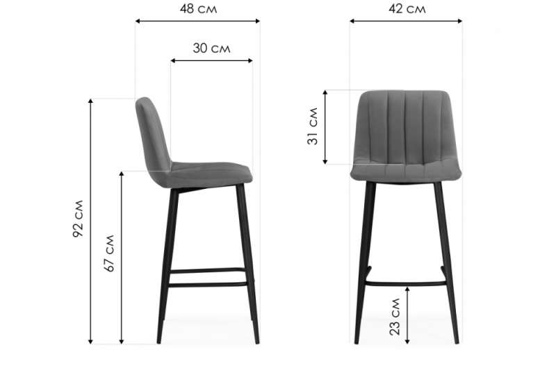 Барный стул Дани светло-серый 52 / черный (42x48x92).