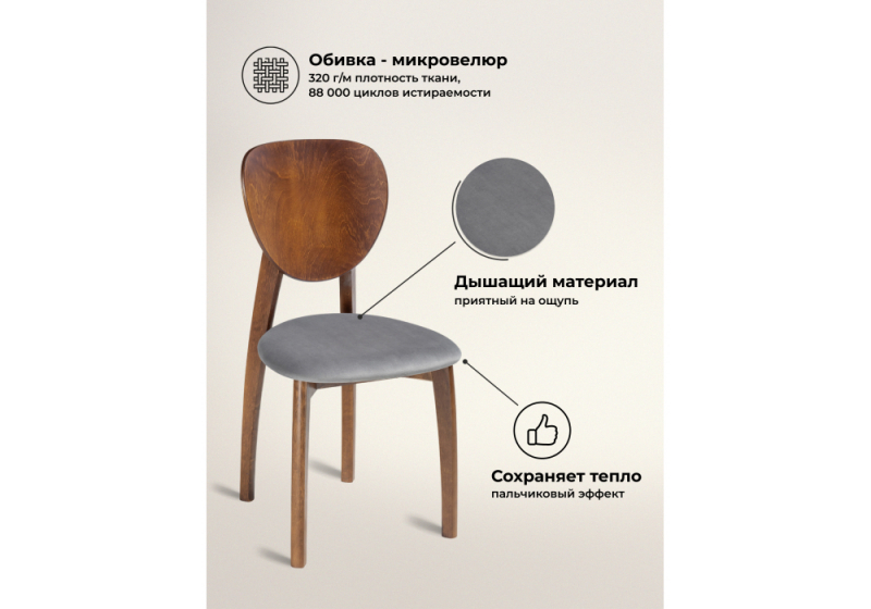 Стул деревянный Окава ткань tenerife stone / миланский орех (44x50x85).