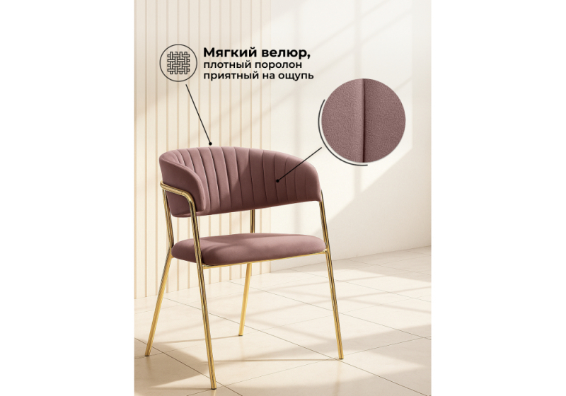 Стул на металлокаркасе Kamelia светло-фиолетовый / золотой (57x54x83).