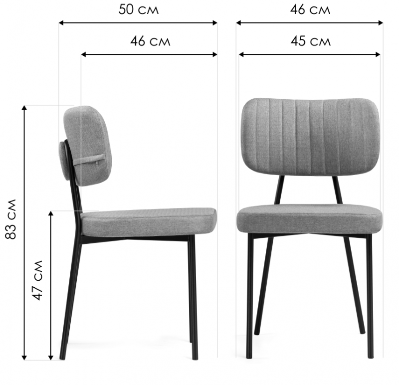 Стул на металлокаркасе Вакао серый / черный (46x50x83)